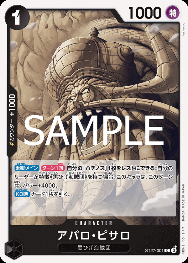 アバロ・ピサロ【C】{001/015}[ST27] アバロ・ピサロ【C】{001/015}[ST27] 販売価格: 50円 状態 在庫 A 8 A- 売り切れ 数量: バリエーションを選択してください。 返品特約に関する重要事項 お問い合わせ ※状態表記に関しては「カードの状態表記について」をご覧ください。